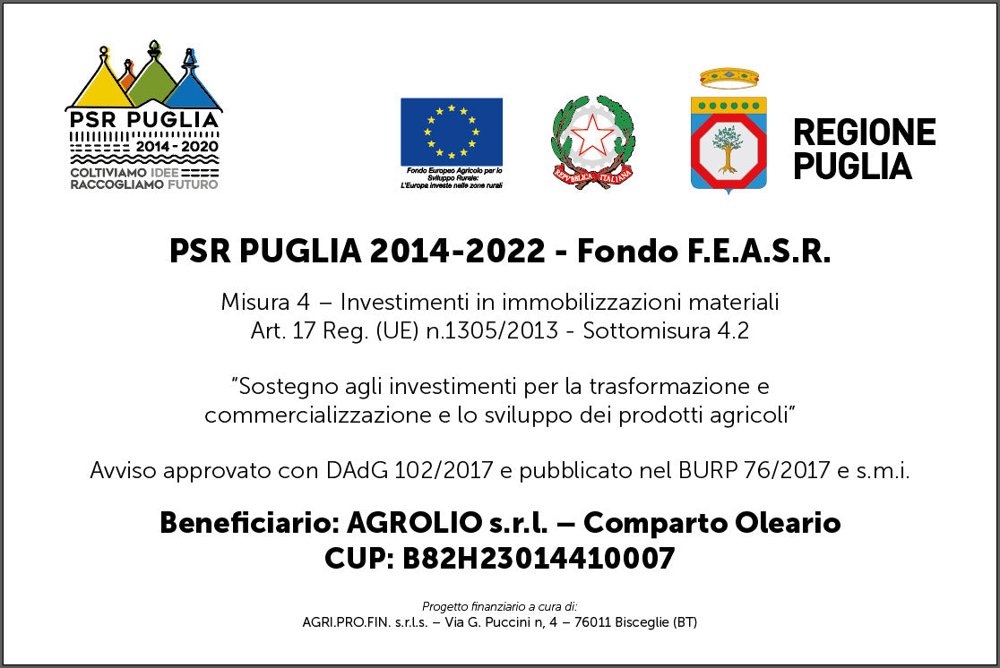 La nostra produzione è interamente basata sulla prestigiosa cultivar Coratina, una varietà autoctona pugliese rinomata per l’elevato contenuto di polifenoli, le eccellenti proprietà organolettiche e i benefici per la salute.